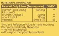 Evening primerose oil (EPO) contain an Omega-6 essential falty acid (gamma-linolenic acid / GLA) which has antiflammatory effect in the body. It is an important condition to women wellness moisture as it help regulate hormones, Improve premenstrual syndrome and menopause symptoms such as breast swelling and pain inability, bloating, acne and improve skin health Efamol Evening Primrose Oil naturally rich in GLA a skin loving Omega-6 fatty acid which helps to reduce wrinkles, and dull skin. with 11% GLA. It is the most Evening Primrose in human nutrition ,backed with over 40 years of research. Benefits It may help reduce symptoms of premenstrual syndrome such as Breast swelling, Pain, imitability, bloating, acne Improve overall skin health by improving skin hydration May help with acne by reducing skin inflammation dur to its anti-inflammatory properties. It may help with joint pain It may help improve Menopause symptoms such as hot flashes.