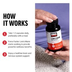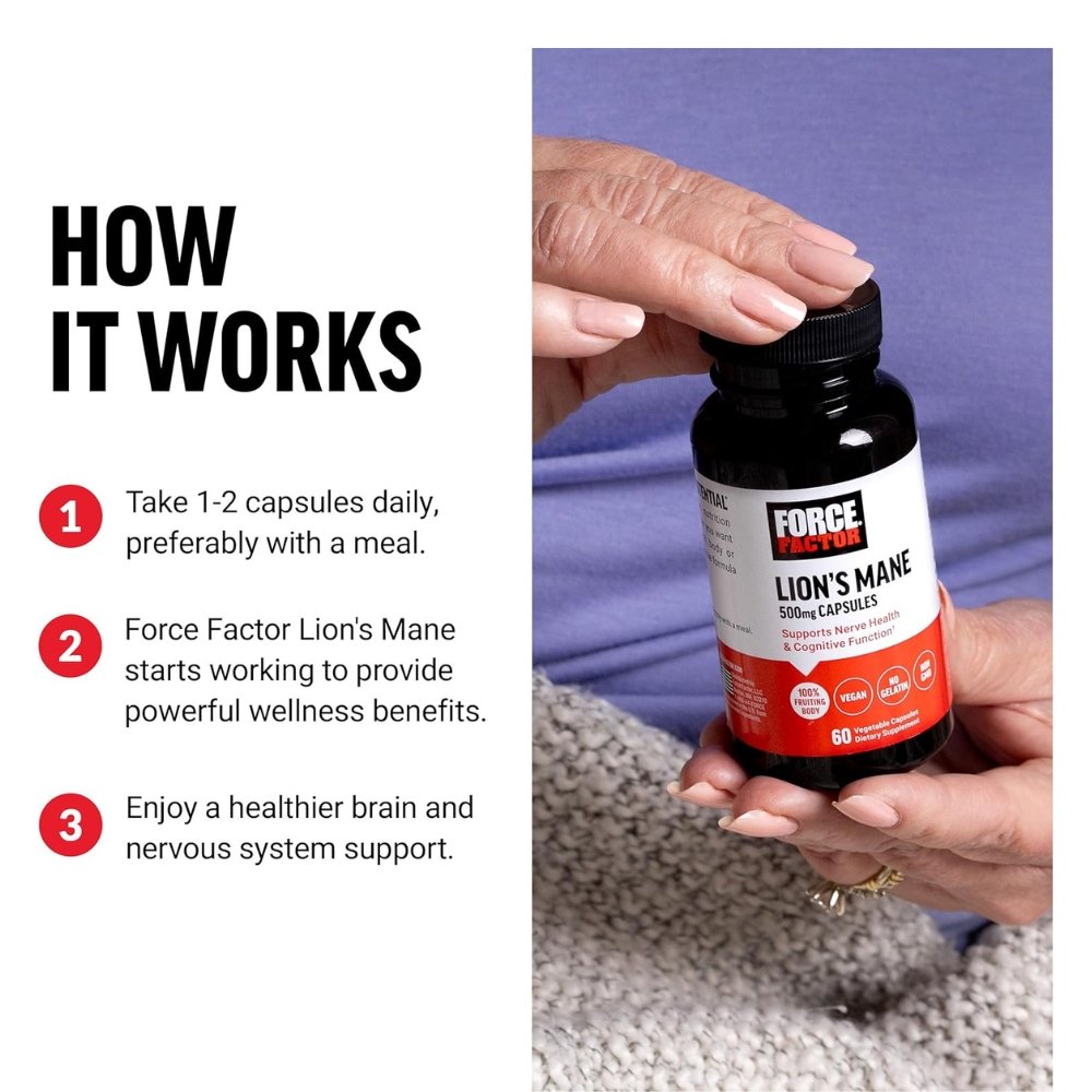 Force Factor Lion’s Mane, 500MG. Supports Memory & Focus, Nerve Health & Cognitive Function, 60 Capsules. Exp:12/ 2027