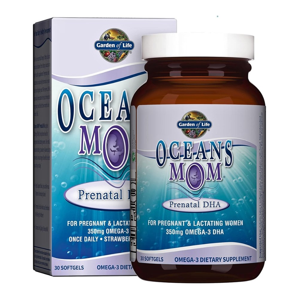 Garden of Life Oceans Mom Prenatal Fish Oil DHA, 350mg.- Strawberry, Prenatal Support For Mother & Growing Baby- 30 Softgels Exp: 08/2026