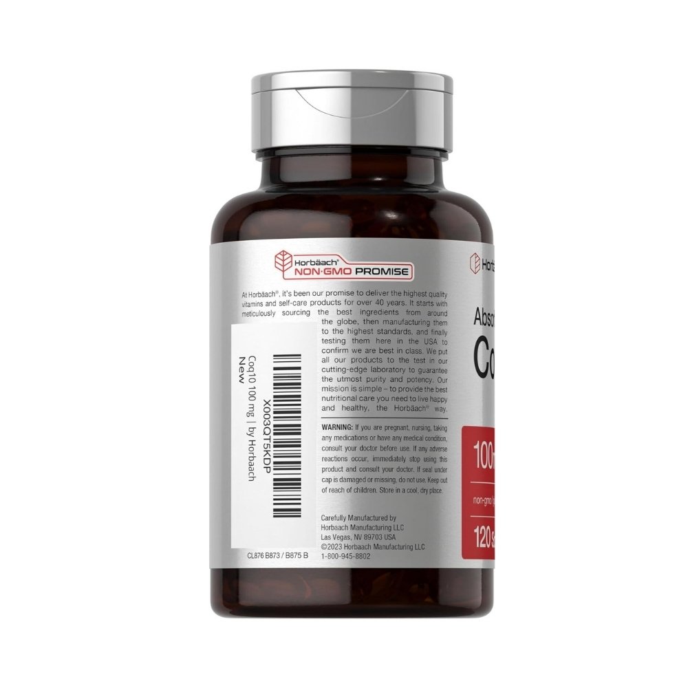 Horbaach Highly Absorbable CO-Enzyme Q-10 + Black Pepper Extract -Supports Heart Health, Well Aging- 120 Quick release Softgels Exp: