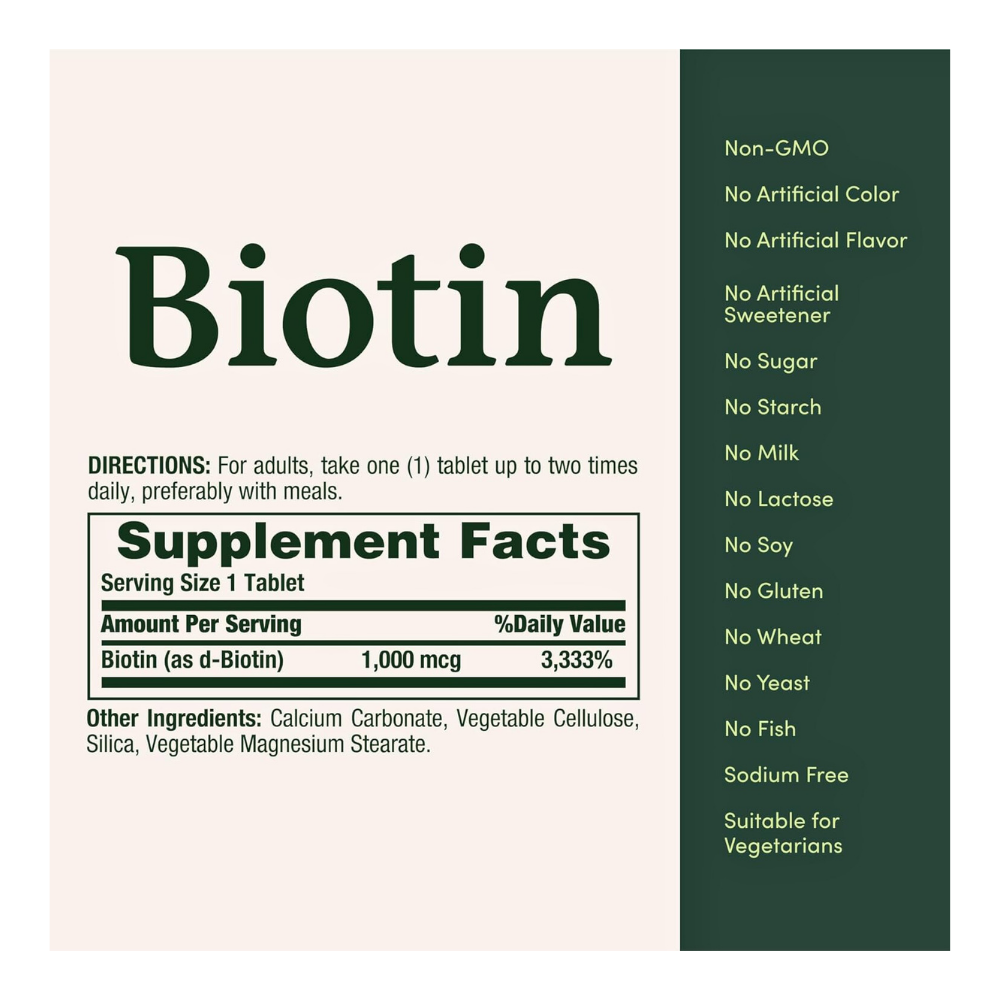 Biotin is also known as vitamin B7, is one of the eight B-Complex water- soluble vitamins which plays a number of important roles in the body. It is essential for converting fats, carbohydrates and protein into energy. It also contributes to normal functioning of the nervous system.