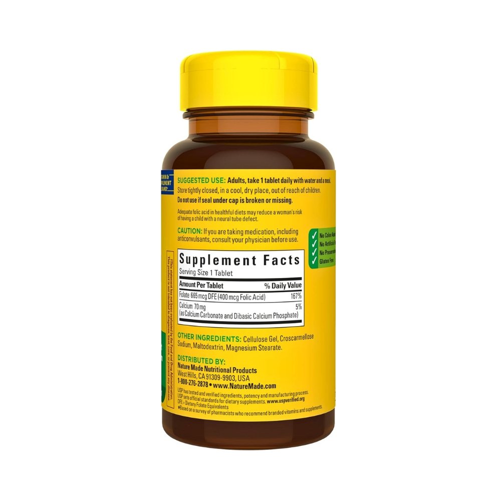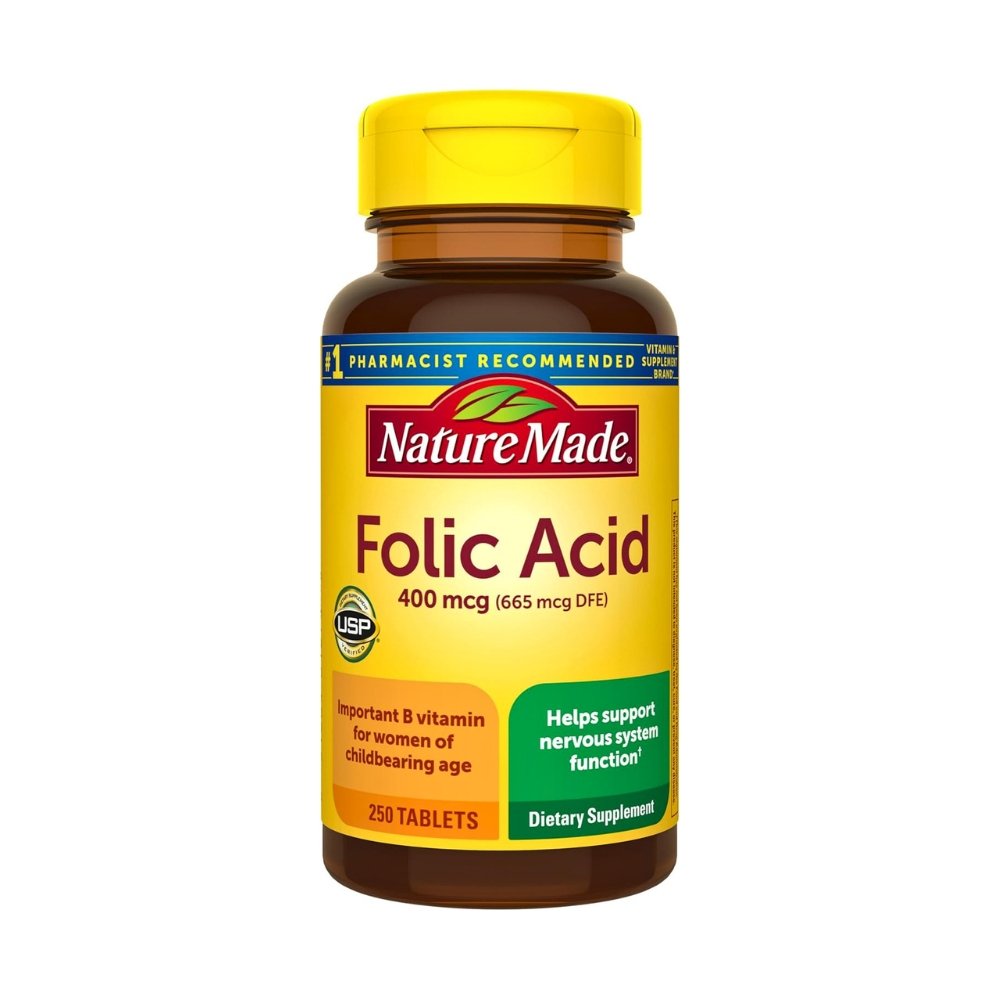 Nature Made Folic acid is recommended as part of a daily regimen for Health, Stress, Mood and Prenatal care.