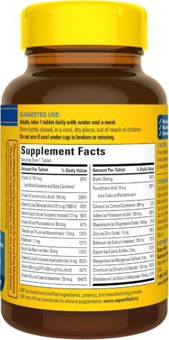 Multivitamins are dietary Supplements that combine several vitamins, minerals and other miconutrients needed by the body to perform various functions in easy to take forms. It helps to fill nutritional gaps in diets inorder to support general health, immunity, or to meet specific needs to prevent or treat deficiency states. Nature made Daily Multivitamin Supplement for Men provide Muscle, Bone, Imune and Energy Metabolism Support for Health and Vitality. It is packed with 22 key nutrients for daily nutritional support