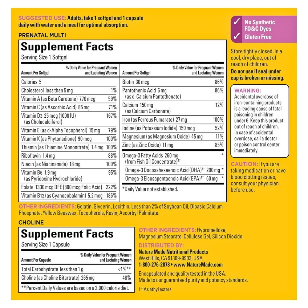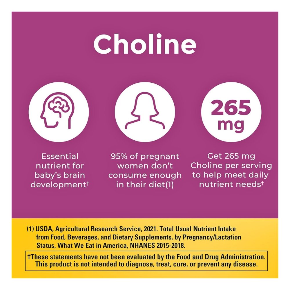 Choline: Essential for fetal brain development, cognitive function, and spinal cord health, yet often missing from many standard prenatal.