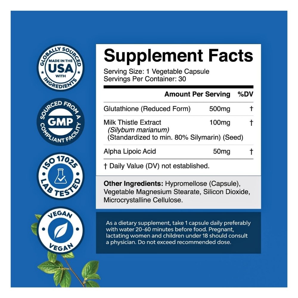 Natures craft glutathione is a unique blend that combines Milk thistle which encourages healthy liver function, promotes healthier skin, aids digestive health, and Alpha lipoic acid, a potent antioxidant that combats oxidative stress, reduces inflammation, and improves metabolism.