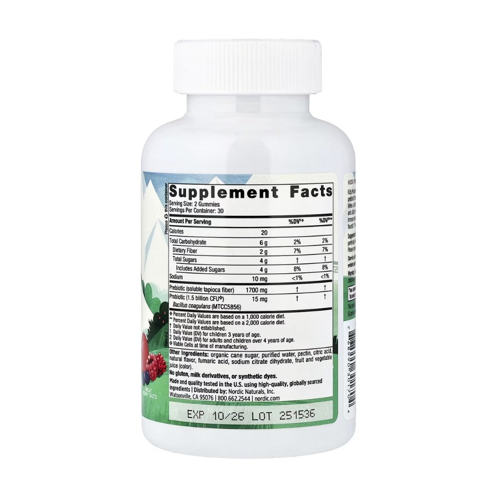 Flora balance: This go-anywhere gummy carries a research-supported amount of “good” gut bacteria perfect for smaller tummies