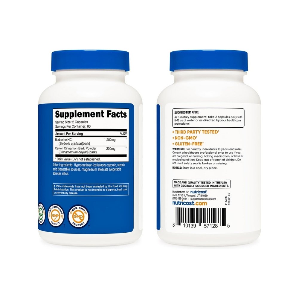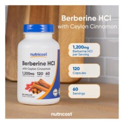 Nutricost Berberine with Ceylon Cinnamon is the perfect addition to your wellness routine. It is a dynamic combination that harnesses the synergistic benefits of Berberine and Ceylon Cinnamon in one convenient capsule, Crafted to support your holistic wellness goals.