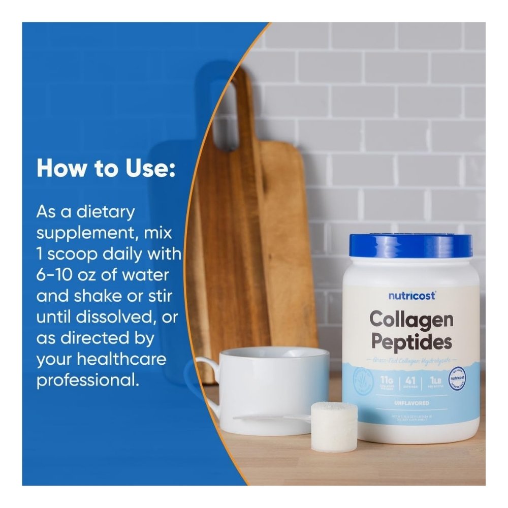 Joint Support: Collagen strengthens cartilage and improves mobility in joints, particularly the knees which can be beneficial in Osteoathritis.