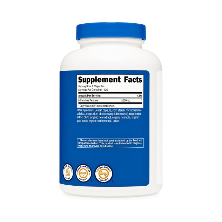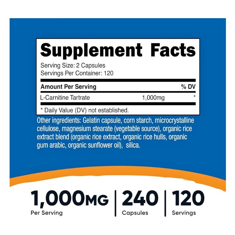 Nutricost L-Carnitine Tartrate 1000mg. For Energy Support, Endurance, Muscle Recovery, Weight loss, Fertility Support -240 capsules Exp: