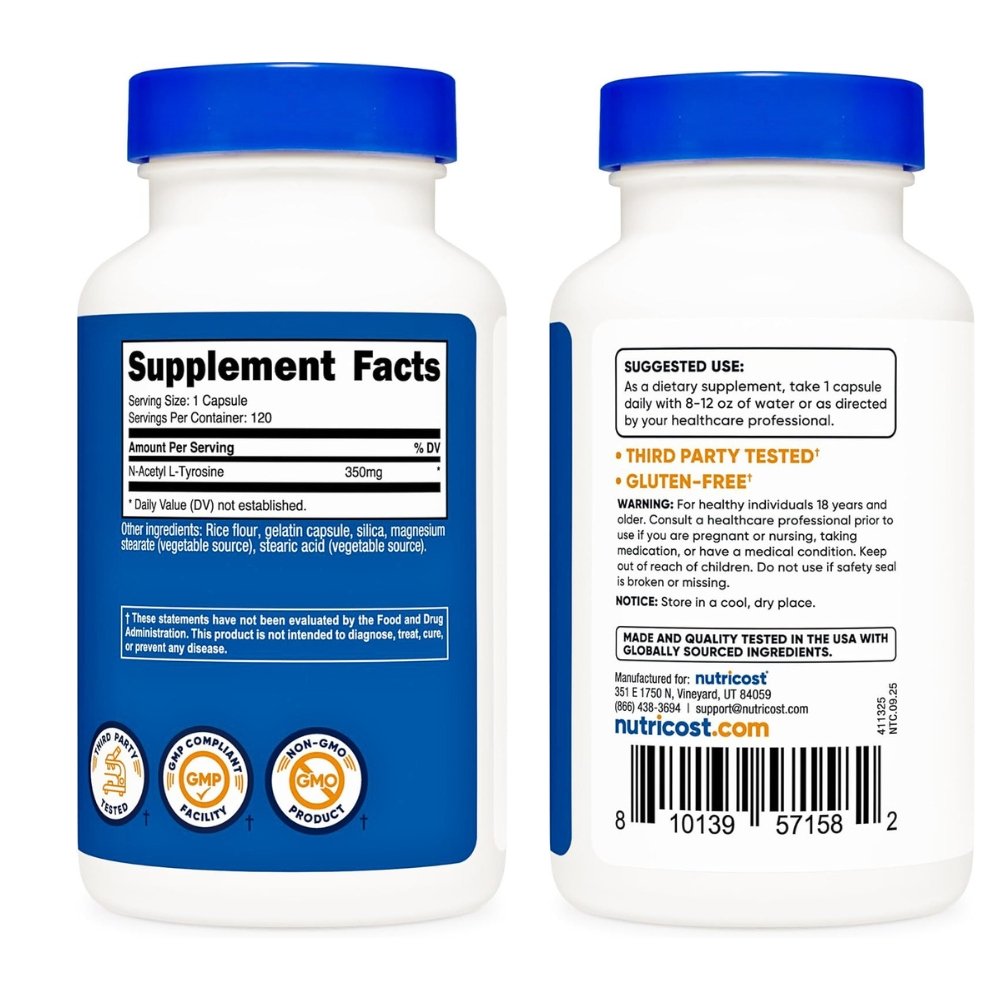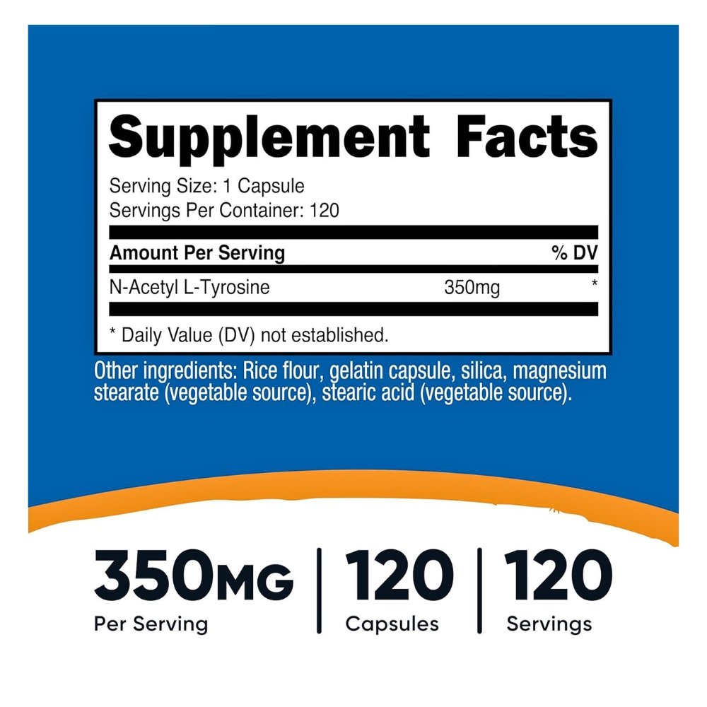 N-Acetyl-L-Tyrosine is a modified, more water-soluble, and bioavailable version of the amino acid L-tyrosine which plays a vital role in the production of neurotransmitters, important brain chemicals that help nerve cells communicate. They include dopamine, norepinephrine, and epinephrine, it increases the brain levels helping to improve cognitive performance, focus and memory under high stress conditions. It is commonly used to mitigate cognitive decline during stress, multitasking, or sleep deprivation and may help improve alertness, attention, and focus and may even regulate mood, it may also boost physical performance.