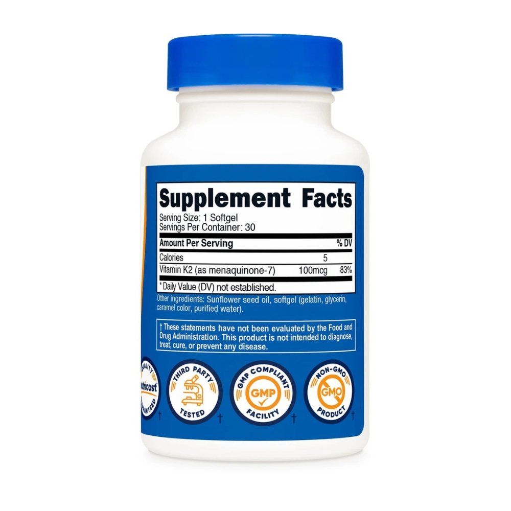 Nutricost Vitamin K2, MK-7, 100MCG. For Bone & Heart Health, 30 Softgels Exp:07/2027