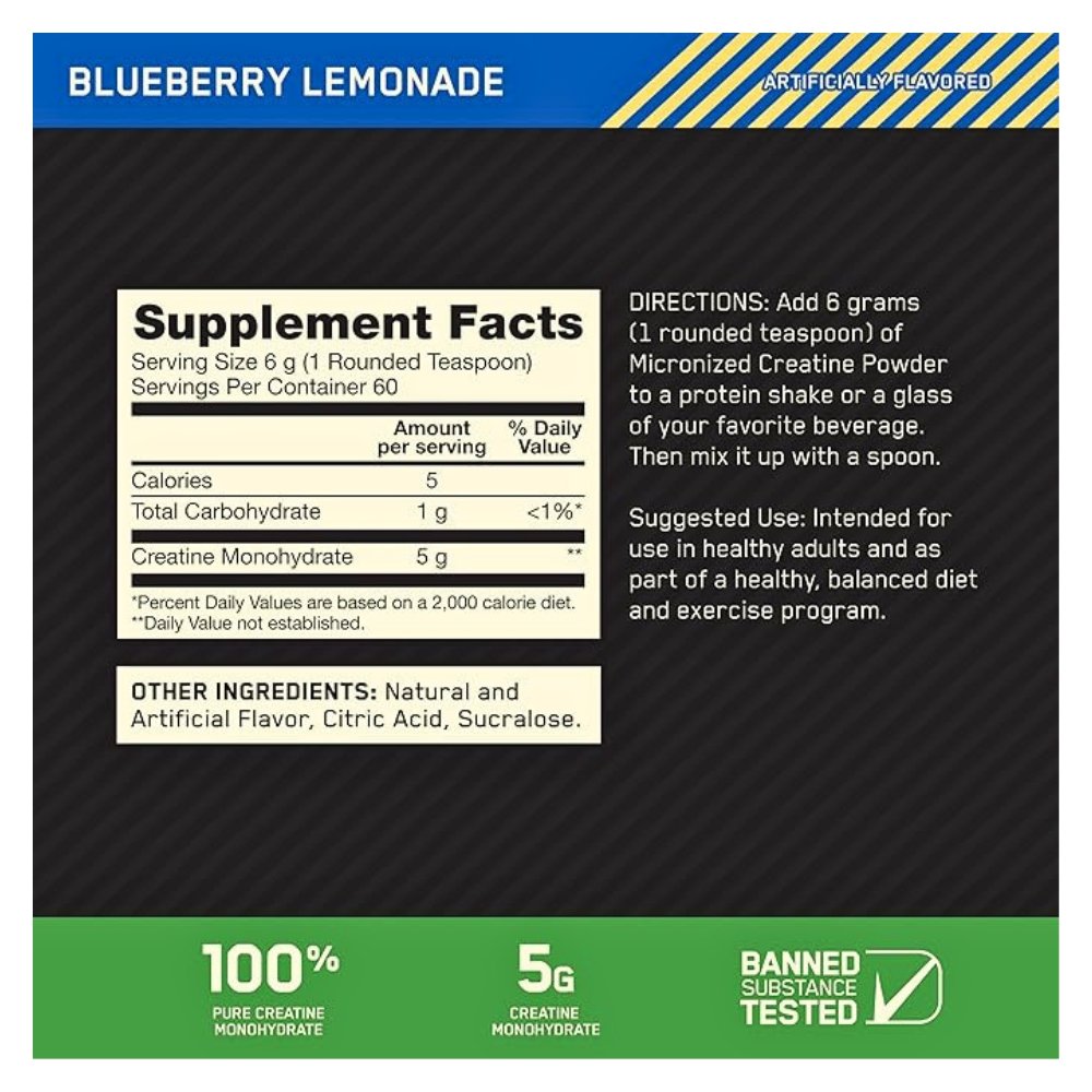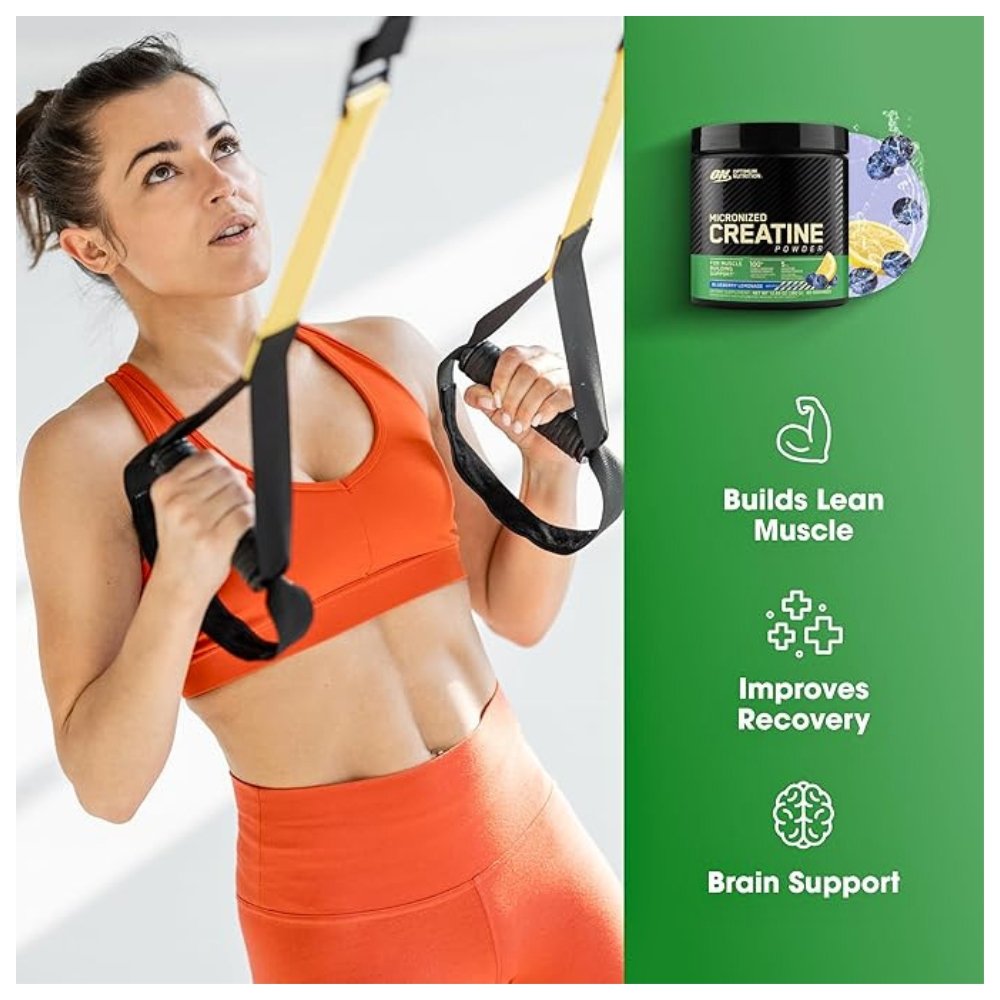 Optimum Nutrition Micronized Creatine Monohydrate Powder, Blue Raspberry Flavour 300g- For Muscle Building Support, Improved Exercise Performance & Recovery, Brain Health- 60 Servings Exp:06/ 2027