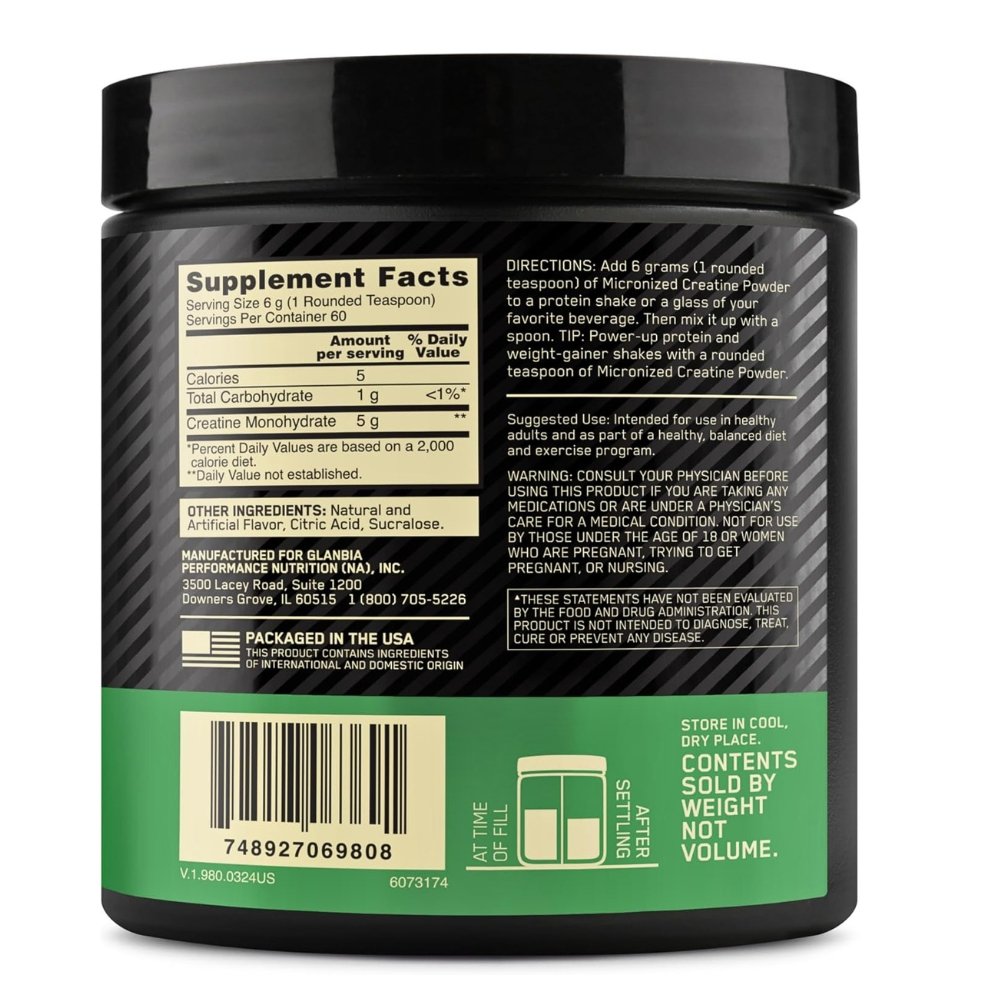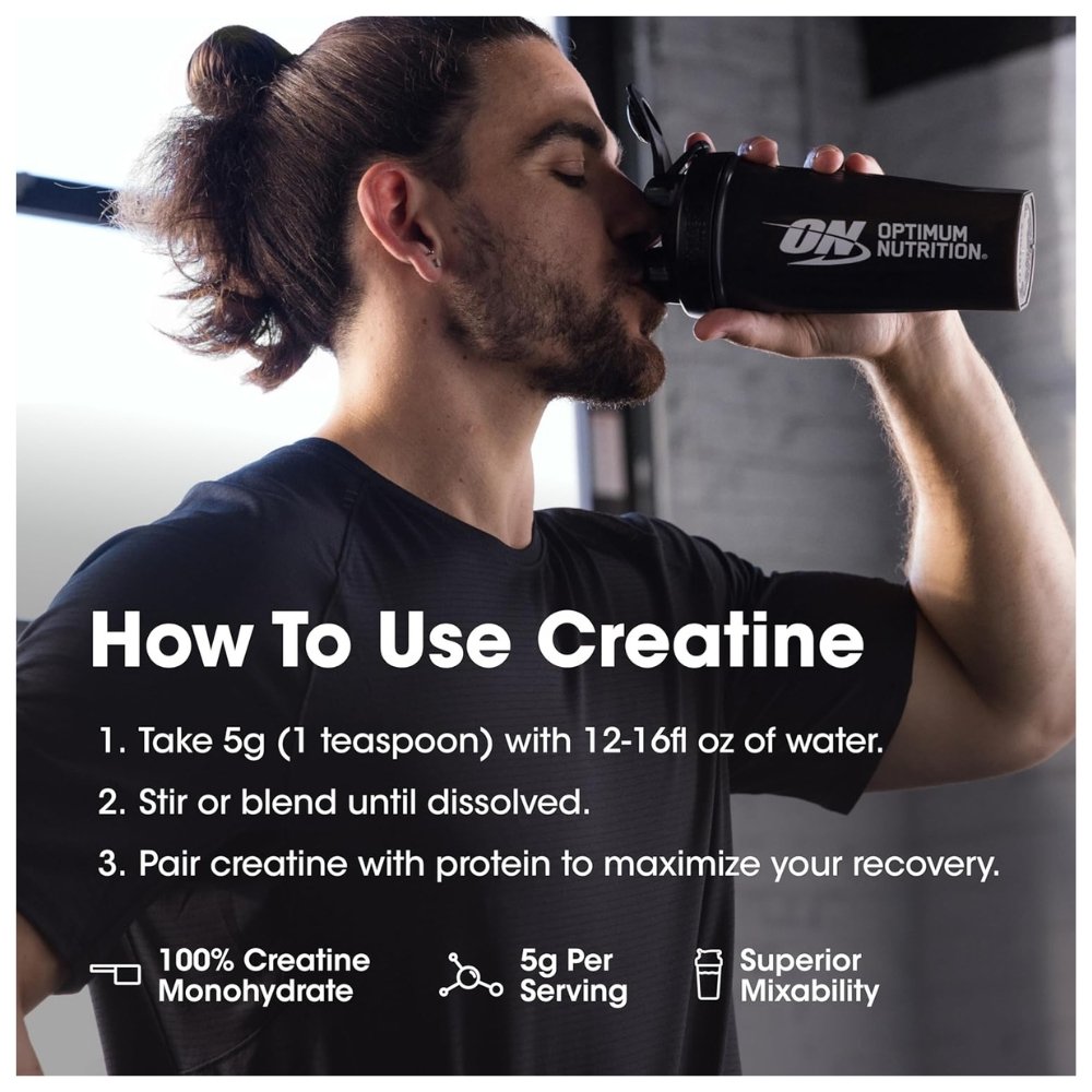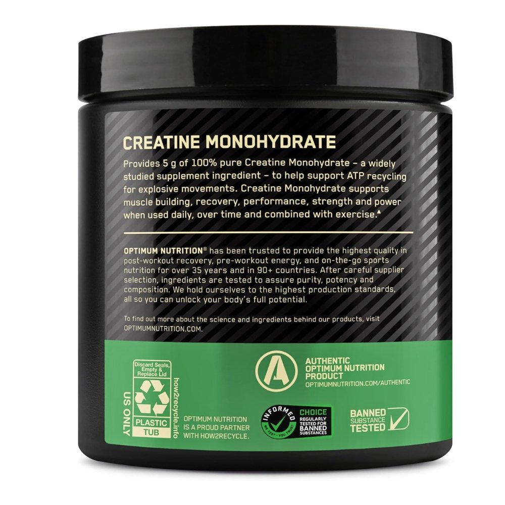 Optimize your exercise, stamina and brain power with Creatine. It is a natural source of energy that helps muscles contract. It creates a steady supply of energy in your muscles so they can keep working, especially while exercising, helping boost exercise performance. In addition, Creatine boosts cognitive function, memory and mood making it beneficial for brain health. The creatine we produce isn’t typically enough for our total requirements, diet and supplementation are recommended sources of meeting required needs. Optimum Nutrition Micronized Creatine Monohydrate powder provides maximum potency support for muscle building and strength training. It is micronized to get the most out of each dose. It is produced under the highest quality control measures so you feel safe and comfortable consuming this product. A top supplement for exercise performance.