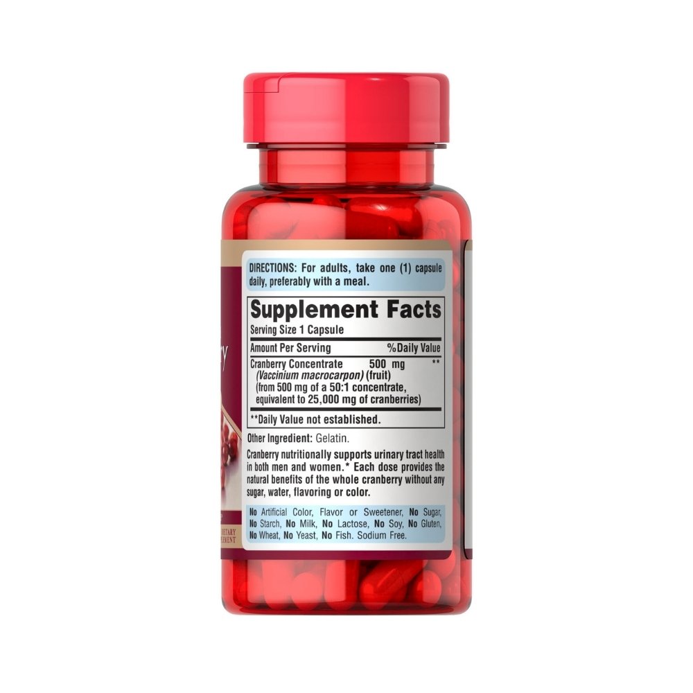 Cranberries are nutrient dense berries, it is rich in antioxidants Vitamin C, E, K and Proanthocyanidins which is best known for its effects on Urinary and bladder health. It helps prevent urinary tract infections (UTIs) by stopping bacteria from sticking to bladder walls, but also offer benefits like supporting Heart health, improving Gut health, aiding blood sugar control, and boosting oral and skin health. They are also particularly beneficial for skin health as they reduce appearance of wrinkles, improve elasticity, skin texture and tone, and calm irritated, red skin. Puritan’s Pride rapid release cranberry capsules is a source of free radicals fighting antioxidant that also helps cleanse the urinary tract to remove unwanted substances to clear the way for a healthy urine flow.