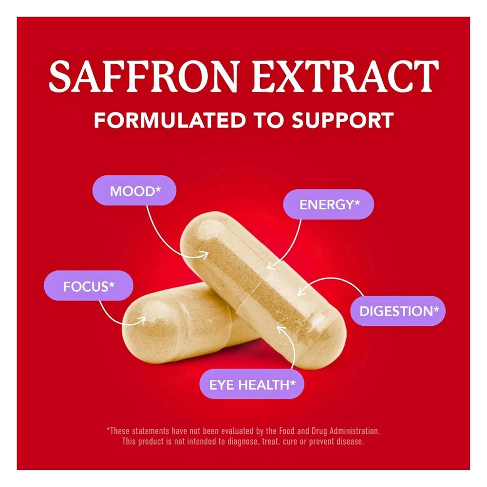 SM Nutrition Pure Saffron Extract, 88MG. Improves Mood, Focus, Eye Health & Energy, 90 Capsules. |3 Months Supply| Exp: 12/2027