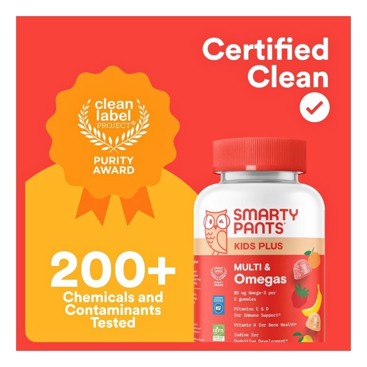 Smarty Pants Kids Plus Multi & Omegas Multivitamin Helps Fill Nutrient Gaps Kids May Have. For Overall Health, Growth and Development Support-100 Gummies Exp: